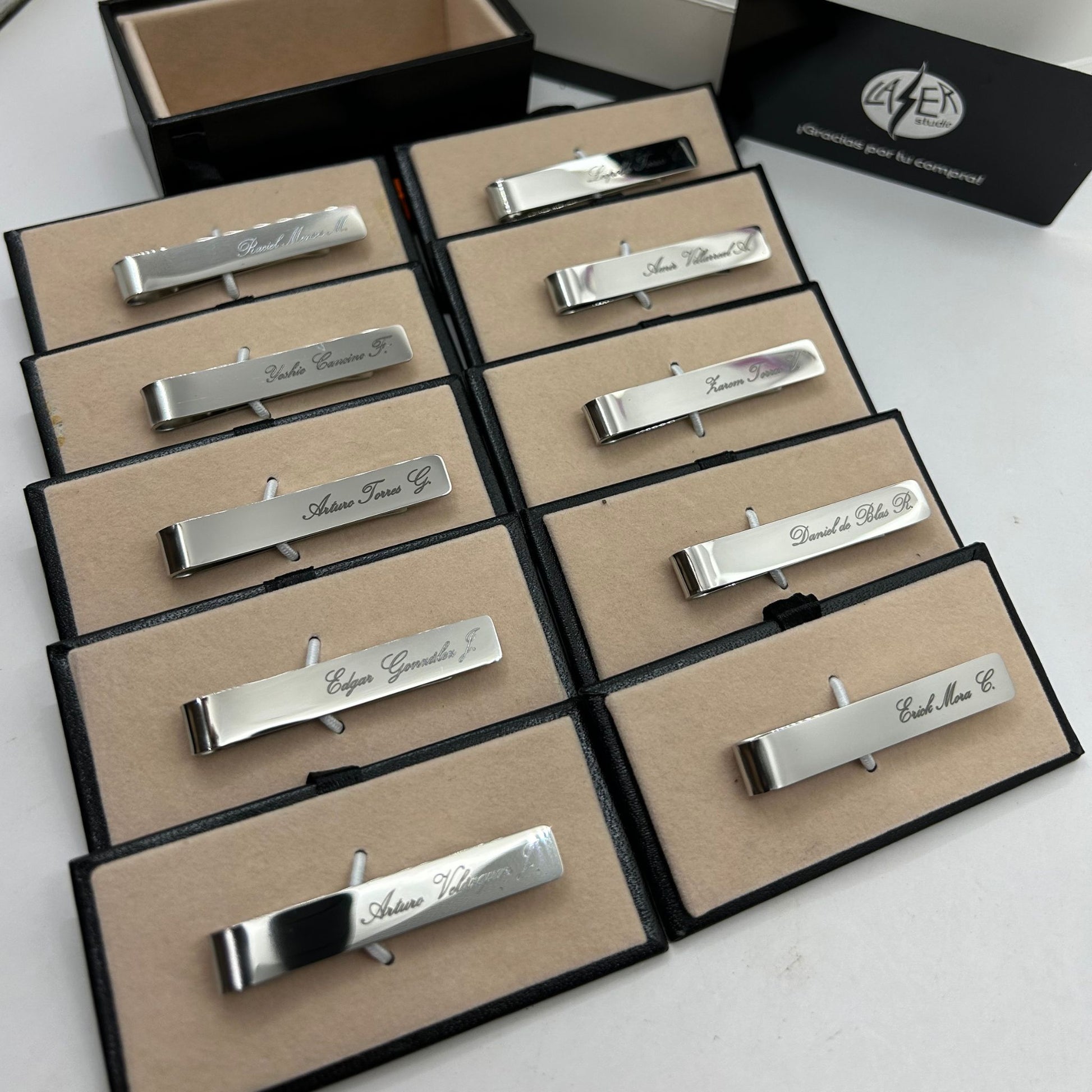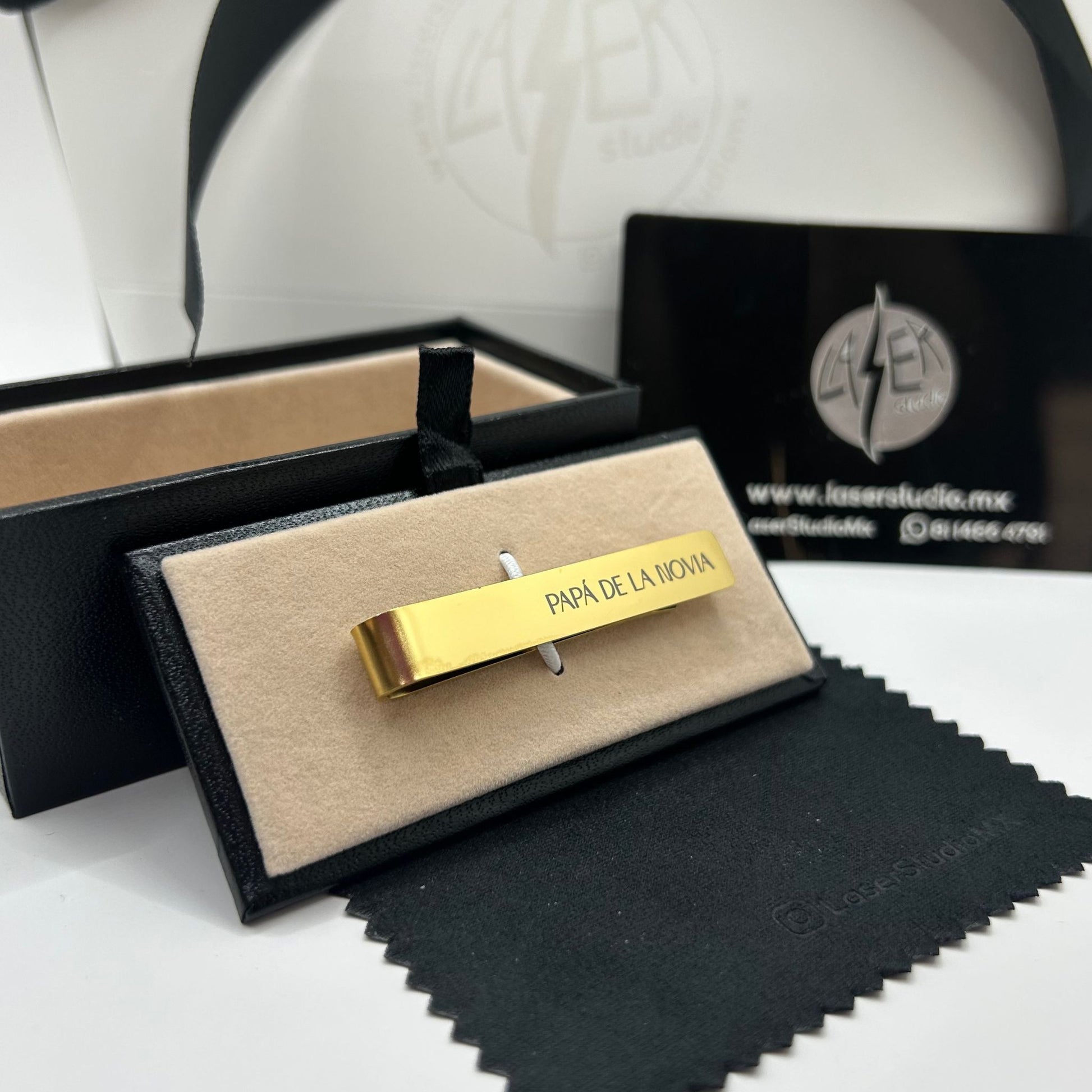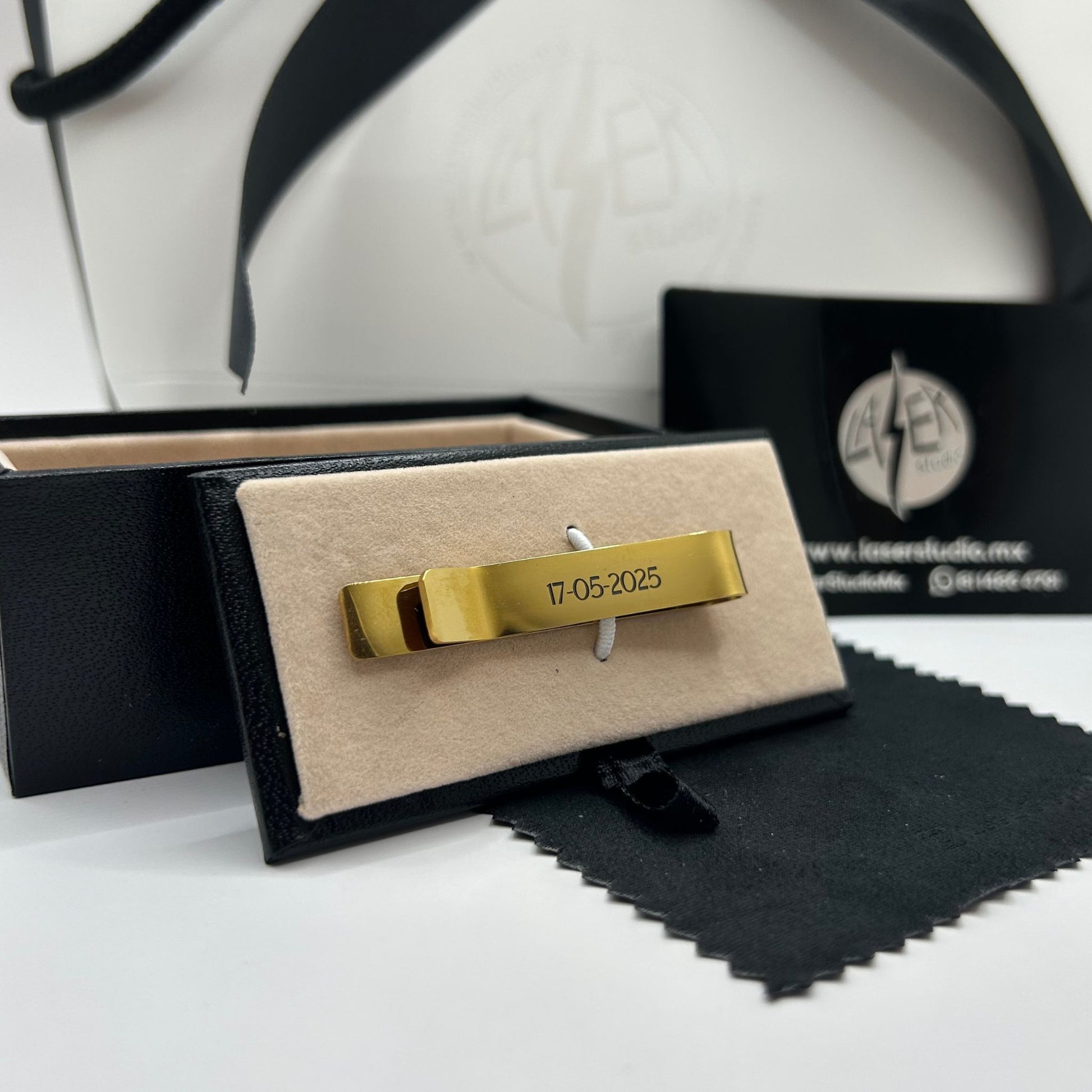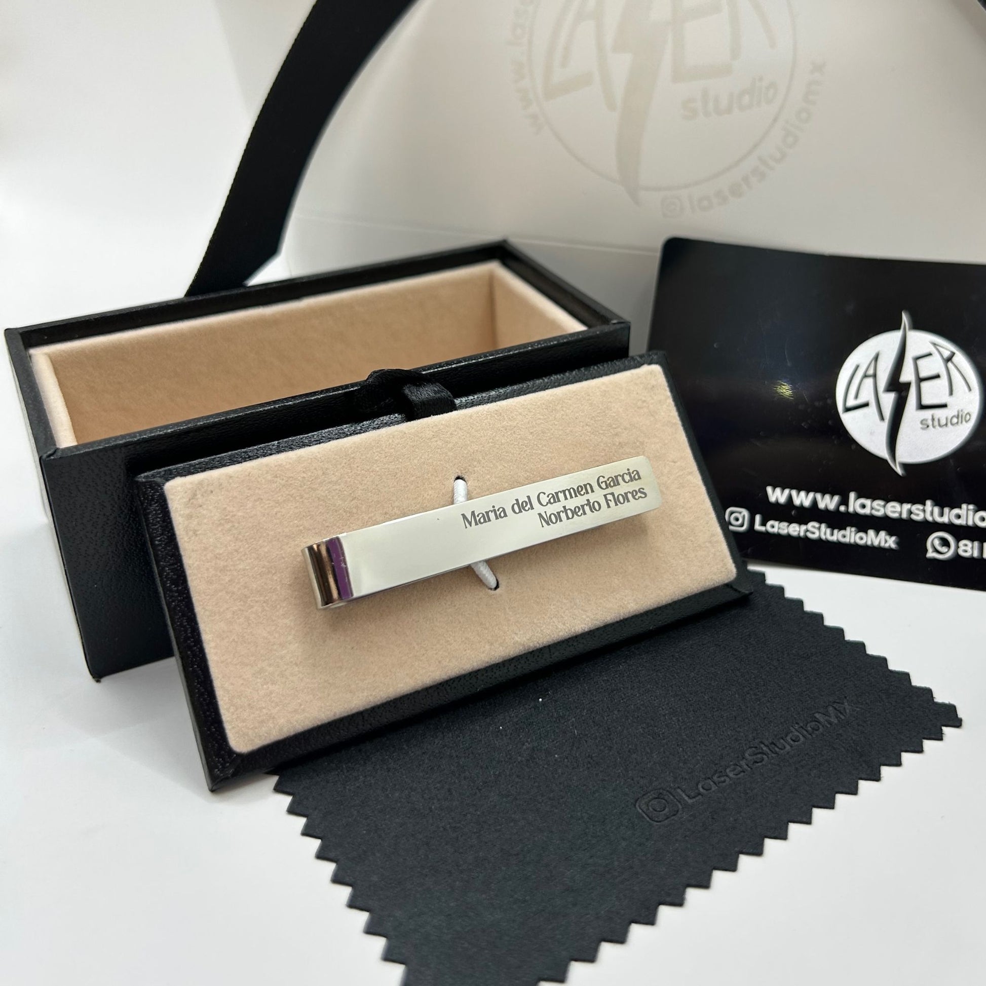 Dale un toque único a tu estilo con nuestro pisa corbata personalizado, disponible en color dorado, plateado y negro. Fabricado en acero inoxidable para un acabado elegante y duradero. El costo incluye grabado en ambos lados, caja de almacenamiento y paño de limpieza.